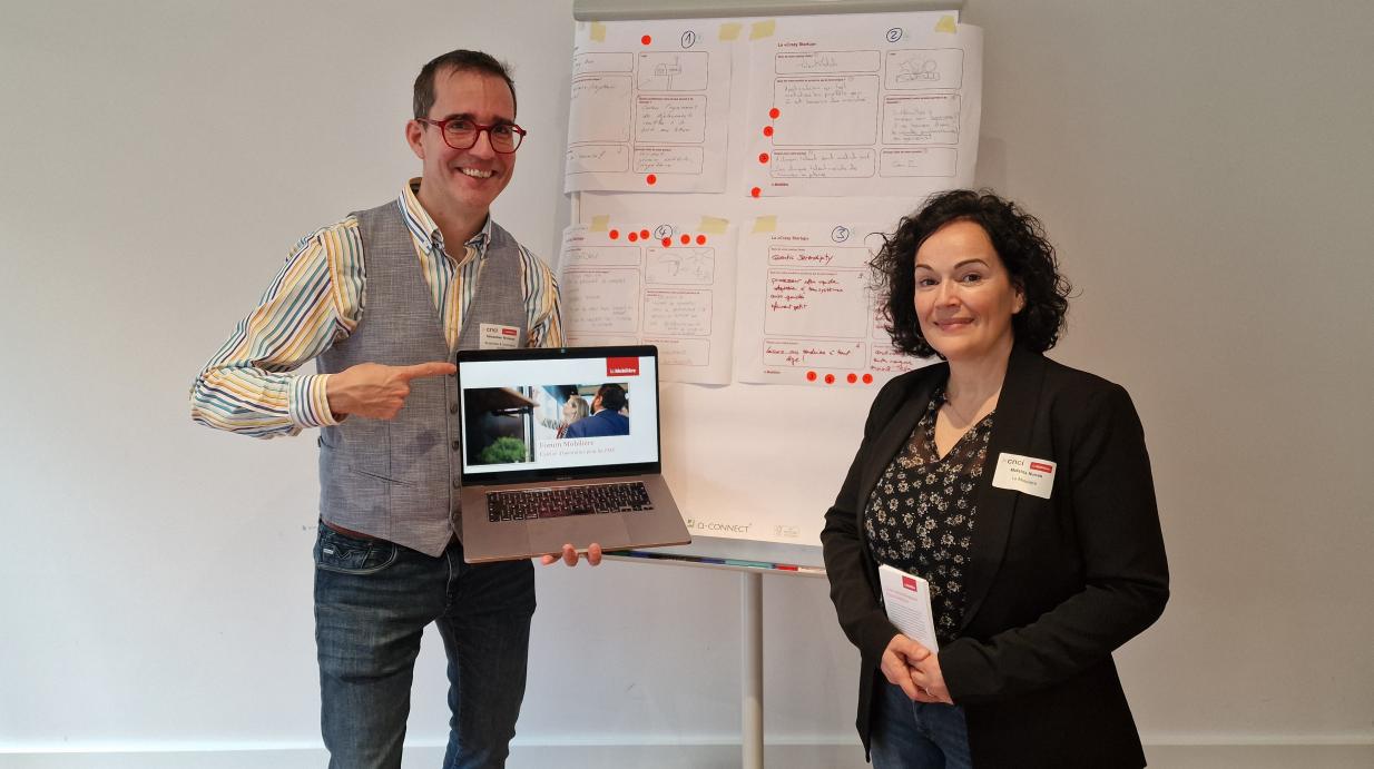 Un point important est que le coach ne fait pas le travail à la place de la PME, mais l’accompagne sur le chemin de l’innovation. On est spécialiste du processus et pas du domaine : ce sont les collaborateurs qui apportent l’expertise métier. Notre rôle est de structurer le travail pour arriver rapidement à des résultats, de questionner, d’inspirer et de trouver le meilleur chemin en fonction des contraintes et de l’ADN de la PME. Au Forum Mobilière, l’échange entre les PME est un des facteurs du succès des journées d’innovation, avoir un regard externe d’un autre pair ou un retour d’expérience sur quelque chose qui a déjà été tenté, cela a parfois plus de poids que si le coach le dit. Un autre facteur de succès est la capacité de l’équipe à planifier la prochaine petite étape, pour garder l’énergie et l’élan développés lors de l’atelier.