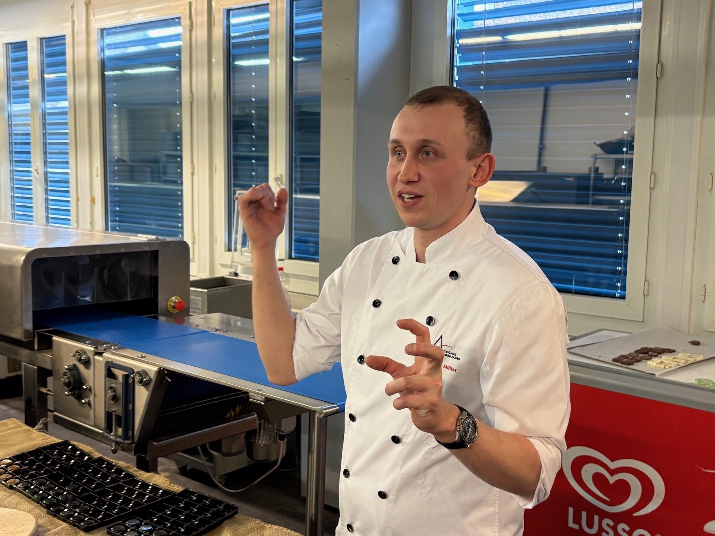 Les participants ont été accueillis dans le laboratoire de l’artisan pour une présentation de la Chocolaterie Praline, maison d’excellence où créativité et exigence se conjuguent au quotidien, et pour rencontrer Samuel Müller, passionné et inspirant.